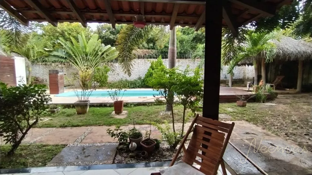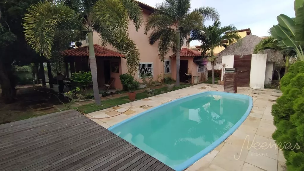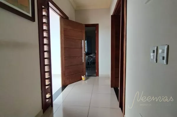 Casa com 02 vagas de garagem, jardim, sala, cozinha, banheiro social, 01 quarto. No pavimento superior possui 02 suítes. Possui área de lazer com piscina.