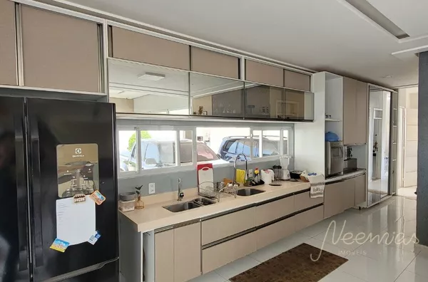 Jardim, pátio, Terraço, sala de estar, sala de jantar, cozinha com ilha planejada e móveis embutidos, 02 jardim de inverno, escritório, despensa, área de serviço, dependência com banheiro , garagem ligada a casa para 04 carros, lavabo, 01 quarto, 04 suítes (02 com closet), piscina, área gourmet com churrasqueira, banheiro de apoio, depósito, mini galpão, quintal, 02 casinhas de cachorro. * Sistema de câmeras* Sistema de irrigação* Cera elétrica * Água aromatizada* Poço D'agua* 04 Árvores METRAGEM:48,00m DE FRENTE 60,00m DE FUNDOSÁREA TOTAL: 2.880,00m²